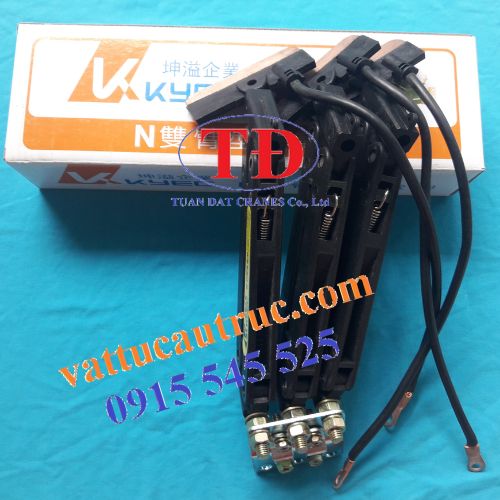 Vì vậy, chúng tôi giới thiệu đến bạn mẫu chổi tiếp điện cầu trục 3P 60A. Với cấu trúc gồm 3 lá than tiếp xúc với 3 rãnh đồng của ray điện tương ứng, sản phẩm này có kích thước và công suất phù hợp để đáp ứng nhu cầu lấy điện cho các loại ray điện an toàn 3P.